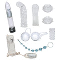 If you are looking for more from your erotic toy or perhaps looking to add a collection to your playthings then look no further than the sensational Crystal Clear Collection, a collection of no less than nine fabulous toys, all in crystal clear jelly.  The superb Crystal Clear Collection comprises a multi-speed mini vibrator, one round head jelly sleeve and one g spot jelly sleeve, one stretchy penis-shaped sleeve with knobbly texture, one multi-speed vibrating bullet, two jelly cock rings, a set of orgasm balls and a string of graduated anal bead.  With the Crystal Clear Collection, youll never be left without a choice of stimulation and this fabulous play kit is great for girls and guys alone time play or couple play so you gain the best experience possible.