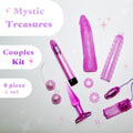 The Mystic Treasures Couples Kit has absolutely everything to keep an adventurous couple busy for weeks and weeks. The kit contains two silicone cockrings, a multi speed bullet, a pair of transparent oscillating duo balls, a slim buttplug with suction cup base and a 7 inch slimline multi speed vibrator with a veiny penis and nubby shaft tickler tipped sleeve. Phew Surely enough to uncover the most hidden treasures, mystic or not